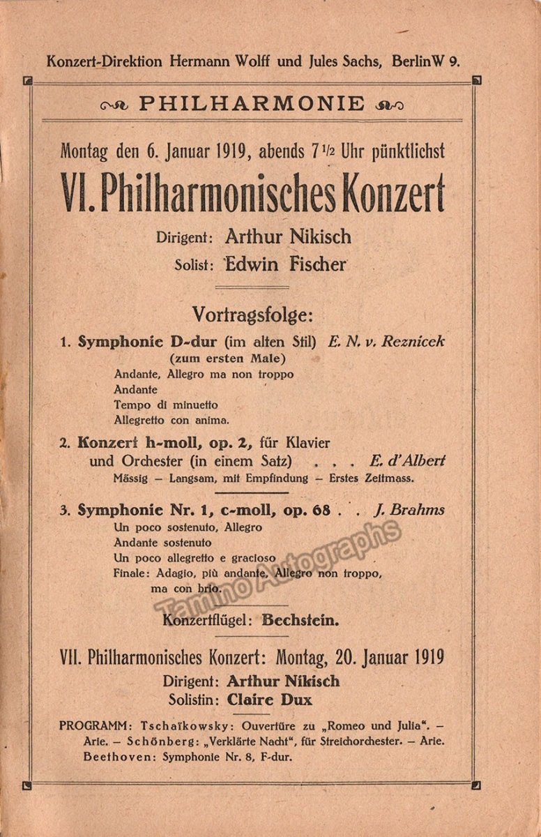 Fischer, Edwin - Nikisch, Arthur - Concert Program 1919