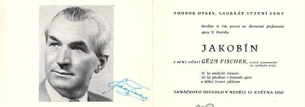 Hungarian baritone (1899-1963), signed photo, shown as himself, linked to  program page for Antonin Dvorak's Jakobin, dated in 1959. 4 folded pages, each is 4.25 x 6 inches, in excellent condition.