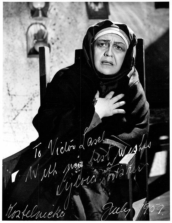 Australian soprano (1910-1996), large signed photo, shown as the Kostelnicka in Janacek's Jenufa, inscribed and dated in 1959. Stamped on verso by photographer Houston Rodgers, London. Size is 6.5 x 8.25 inches, in excellent condition.