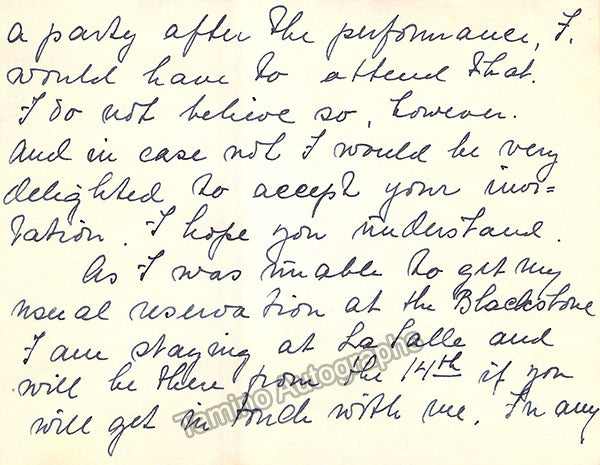 Flagstad, Kirsten - Autograph Note Signed 1947 Flagstad, Kirsten - Autograph Note Signed 1947