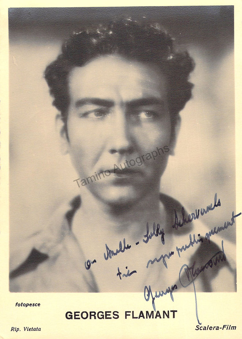 French actor (1903-1990), active in films between 1931-1959. Fine black and white promo photograph signed and inscribed by him with a short sentiment. Size is 4.5 x 5.2 inches, in excellent condition.