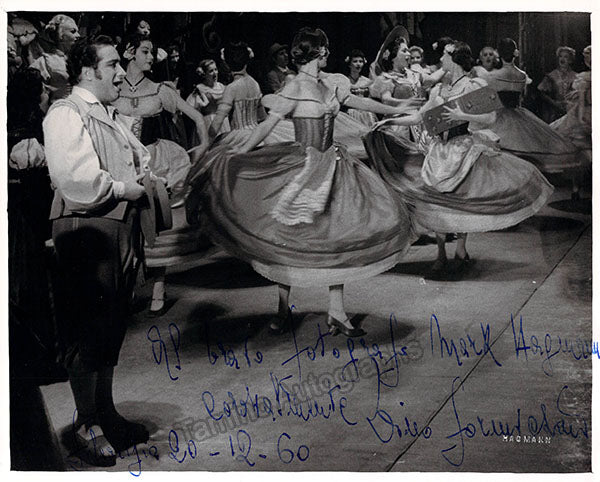 Italian tenor (1922-2016), signed photograph, shown as Nemorino in Donizetti's L'Elisir D'Amore, inscribed and dated in 1960. Blind stamped on front and stamped on verso by photographer Mark Hagmann, Philadelphia. Size is 8 x 10 inches, in excellent condition.