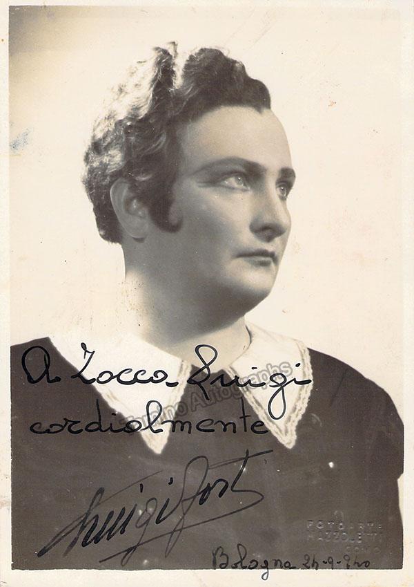 Italian tenor (1907-1976), signed photo postcard, shown in role. Inscribed in Bologna and dated in 1940. Blind stamped by photographer Mazzoletti, Como. Size is 4 x 5.5 inches, in excellent condition.