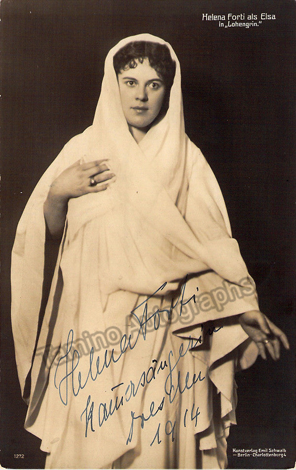German soprano (1884-1942), signed photo postcard, shown in role as Elsa in Lohengrin, dated in 1914, Dresden. Size is 3.25 x 5.25 inches