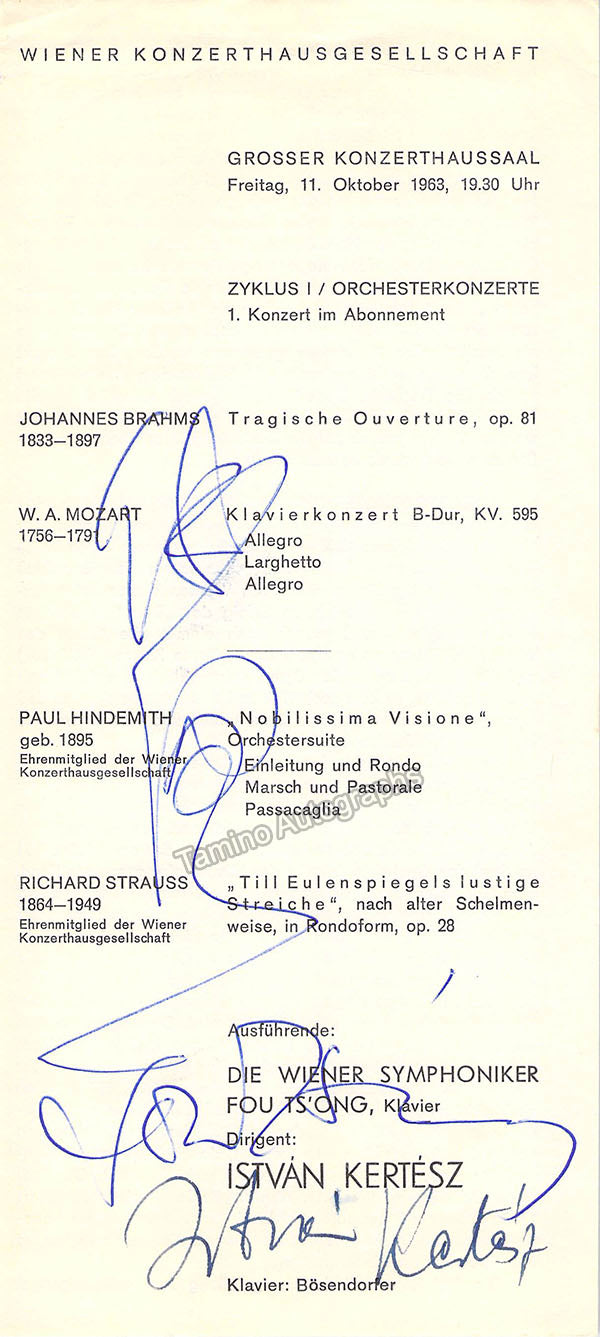 Fou Ts'ong Istvan Kertesz Autographs Signed Playbill Vienna 1963