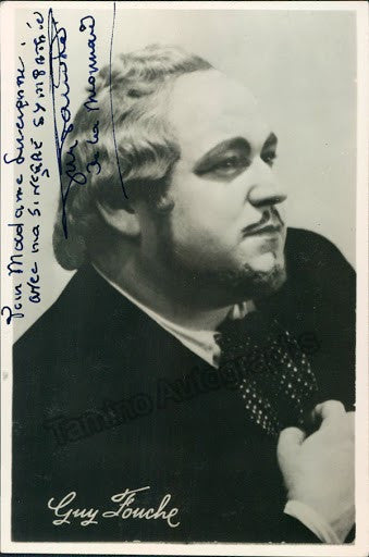 French tenor (1921-1998).  Signed photo shown in role, inscribed.  Size is 3.5 x 5.25 inches, in very good condition.