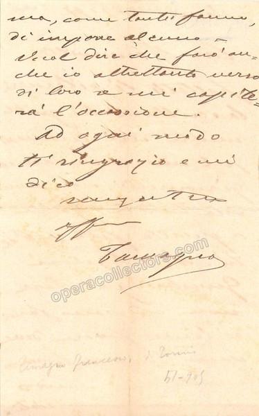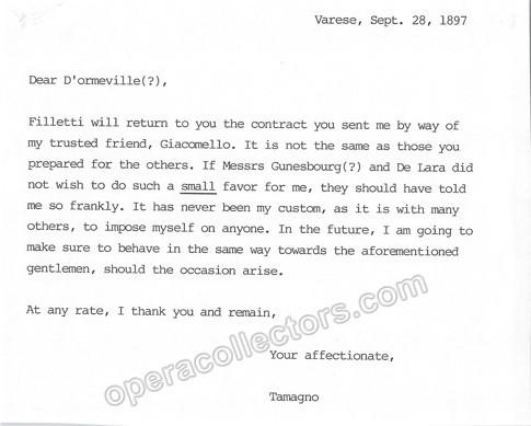 Tamagno, Francesco - Autograph Letter Signed 1897