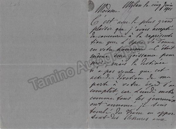 Tamagno, Francesco - Autograph Letter Signed 1901 - Tamino Tamagno, Francesco - Autograph Letter Signed 1901 - Tamino