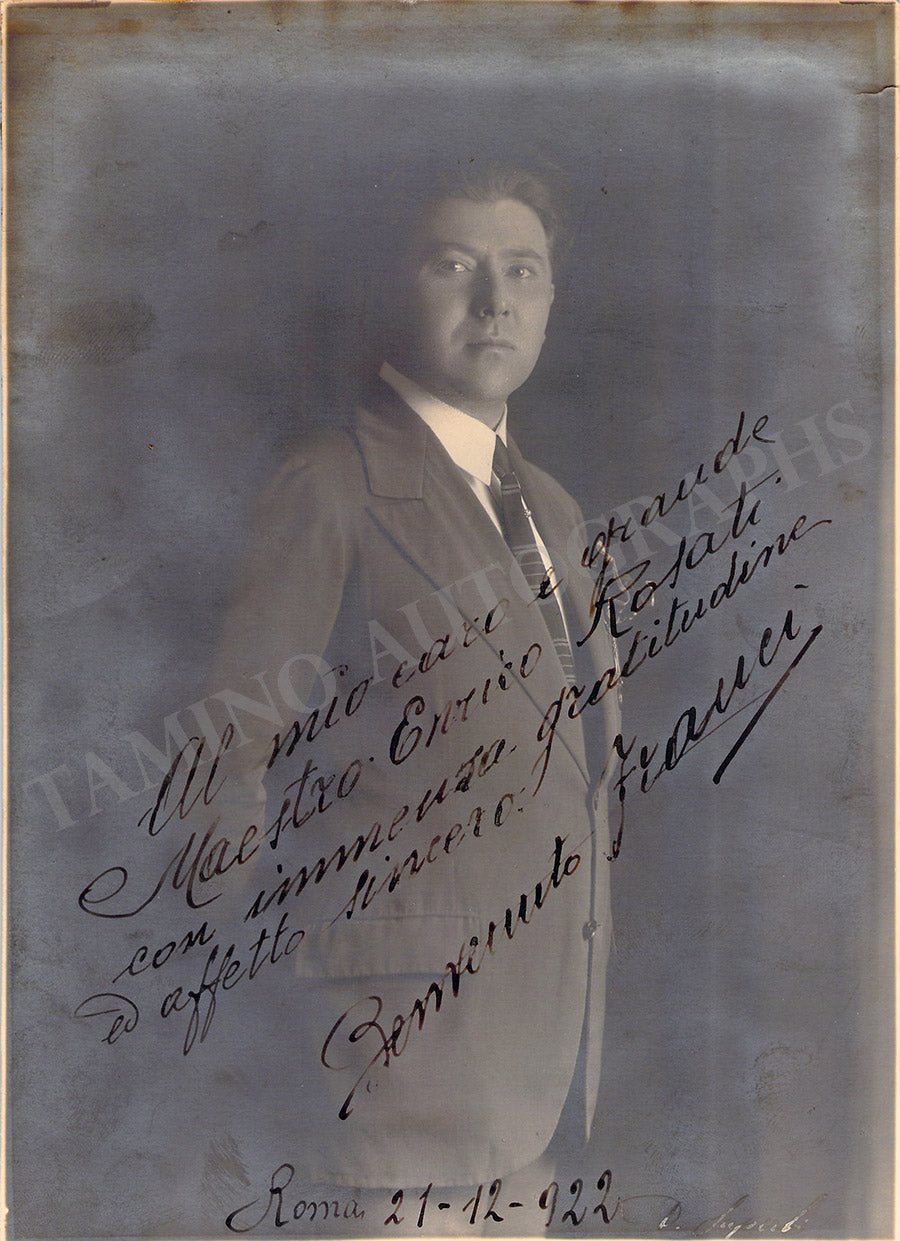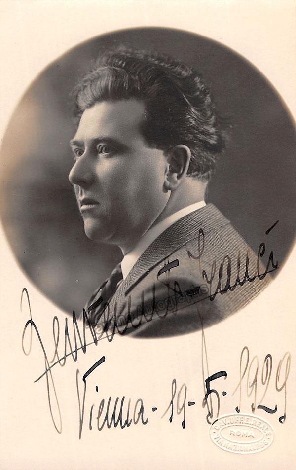Signed photo, shown as himself, inscribed in Milan, dated in 1933. Blind stamped by photographer. Size is 7 x 9.25 inches, in excellent condition.