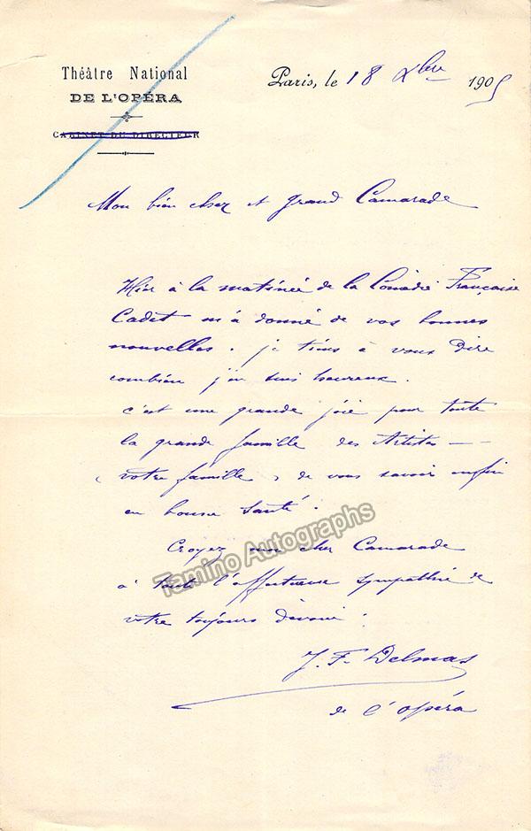 Autograph letter signed, written on Paris Opera letterhead, dated in 1909. Size is 5.5 x 8.5 inches, one page, in excellent condition.
