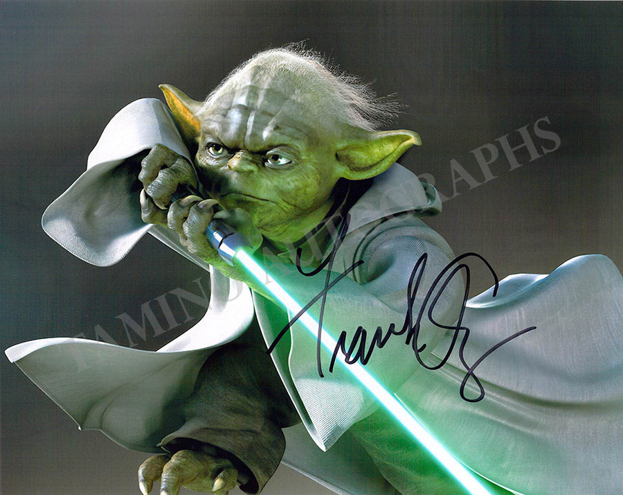 Nice color photograph of the character Yoda signed by him. Size is 10 x 7.9 inches, in excellent condition.