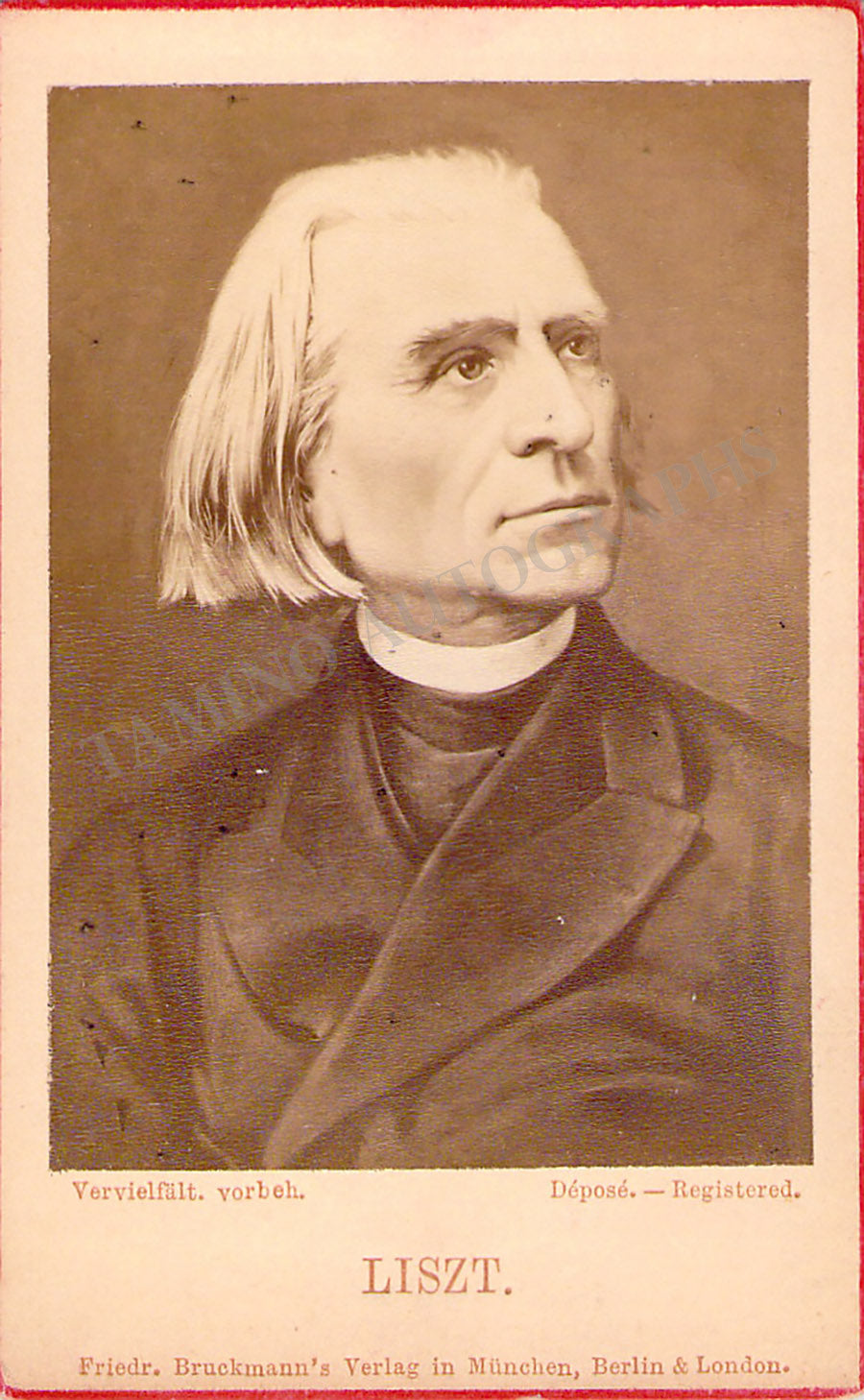 Fine vintage carte-de-visite (CDV) of a portrait of the star composer and pianist by photographer Bruckmann (Munich, Berlin, London). Size is 2.5 x 4.1 inches, in very good condition.