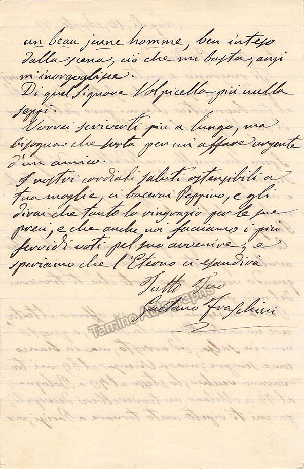 Fraschini, Gaetano - Autograph Letter Signed 1872 - Tamino Fraschini, Gaetano - Autograph Letter Signed 1872 - Tamino