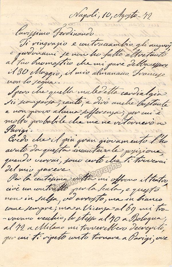 Fraschini, Gaetano - Autograph Letter Signed 1872