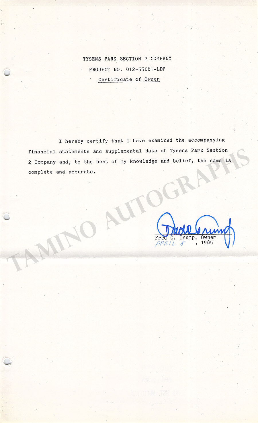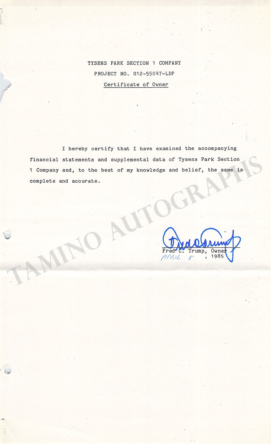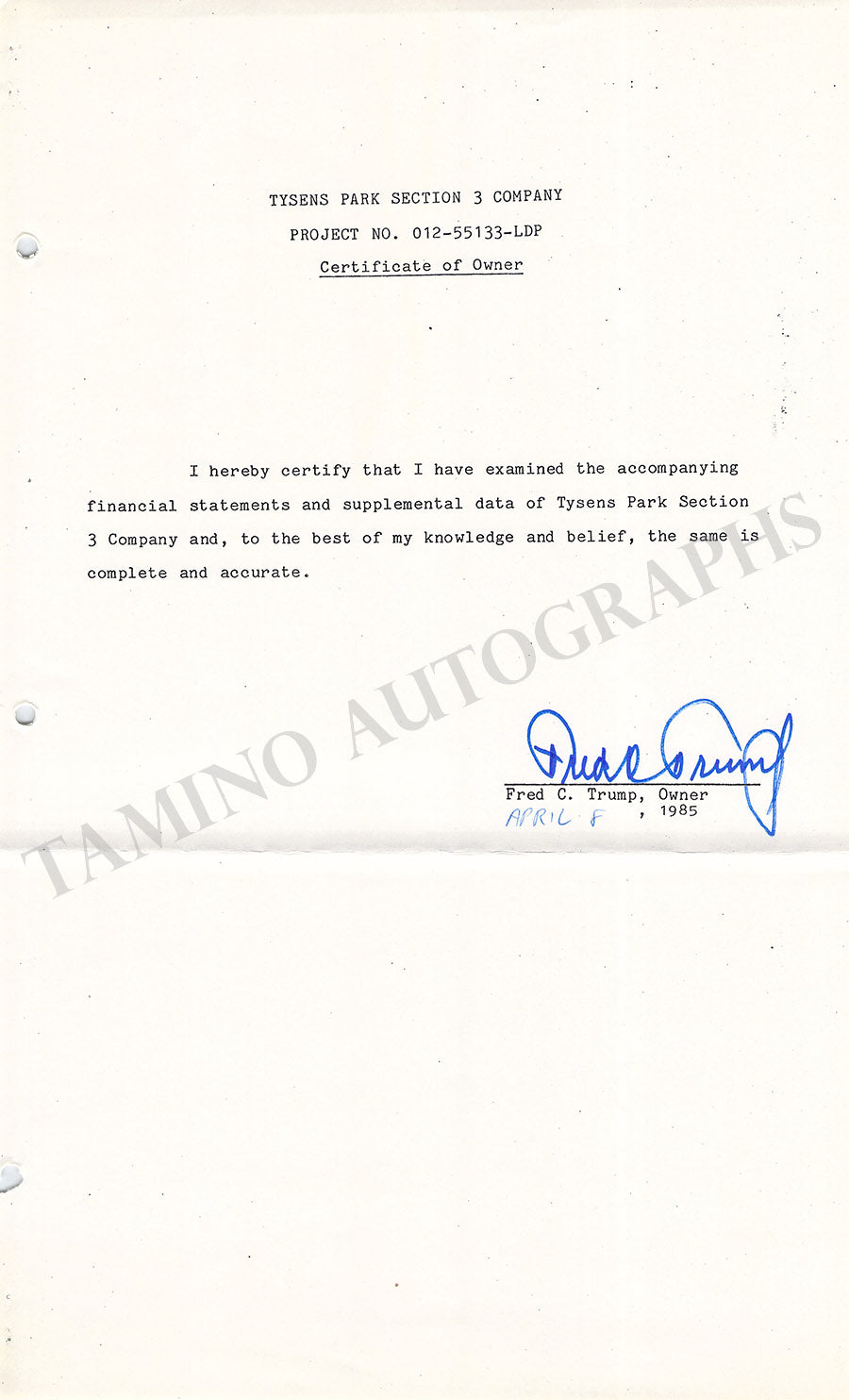 Collection of eight different documents signed by him. Size is 8.5 x 10 inches each one, in very good condition.