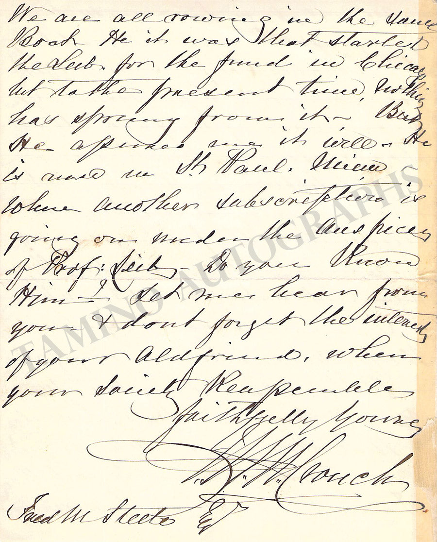 Autograph letter in English signed by him and dated in November 16, 1882, to a certain Fred M. Steele, as follows: