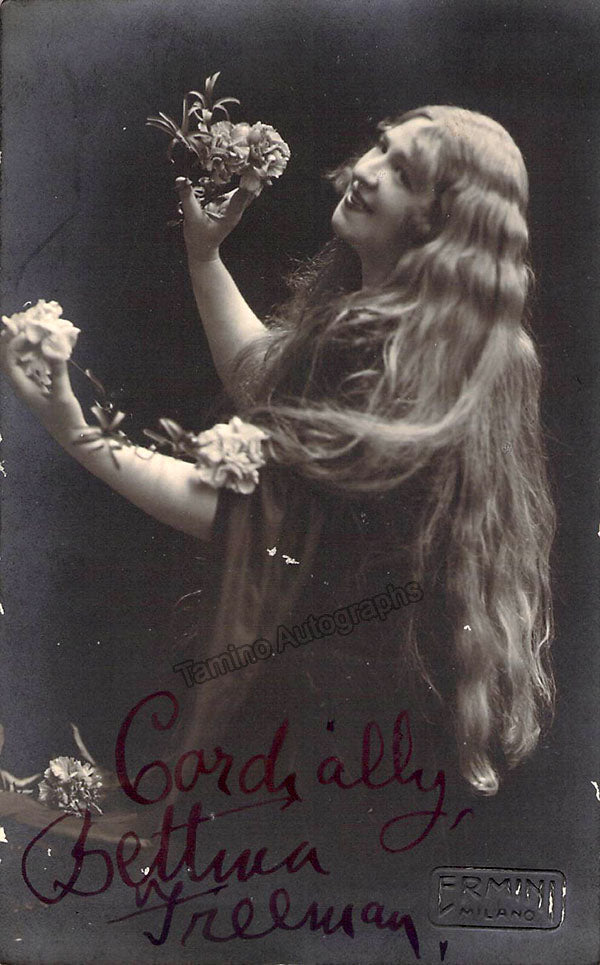 American soprano (1889-?), active with the San Carlo Opera Company from 1911 to 1920. Signed postcard photograph, shown in title role of Ponchielli's La Gioconda,. Blind stamped on front by photographer Ermini, Milan. Size is 3.25 x 5.25 inches, slight silvering on borders, otherwise in excellent condition.