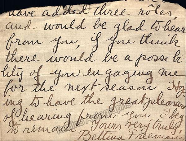 Autograph note signed, contains part of a letter asking about possible repertoire. Very clear handwriting and signature. Size is 4 x 5.75 inches, slight rip at top reflecting missing text, but otherwise in very good condition.