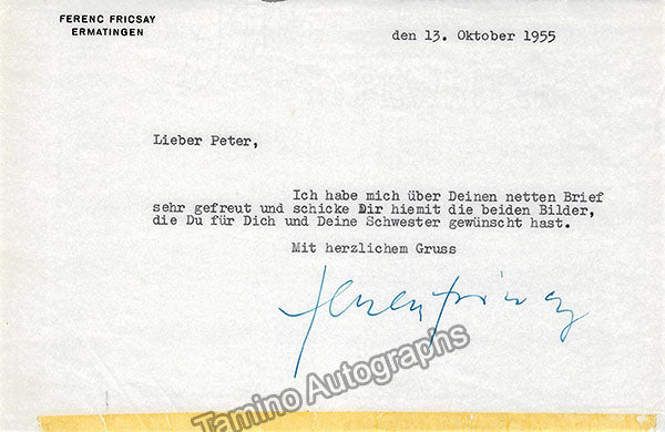 Fricsay, Ferenc - Typed Letter Signed 1955 Fricsay, Ferenc - Typed Letter Signed 1955