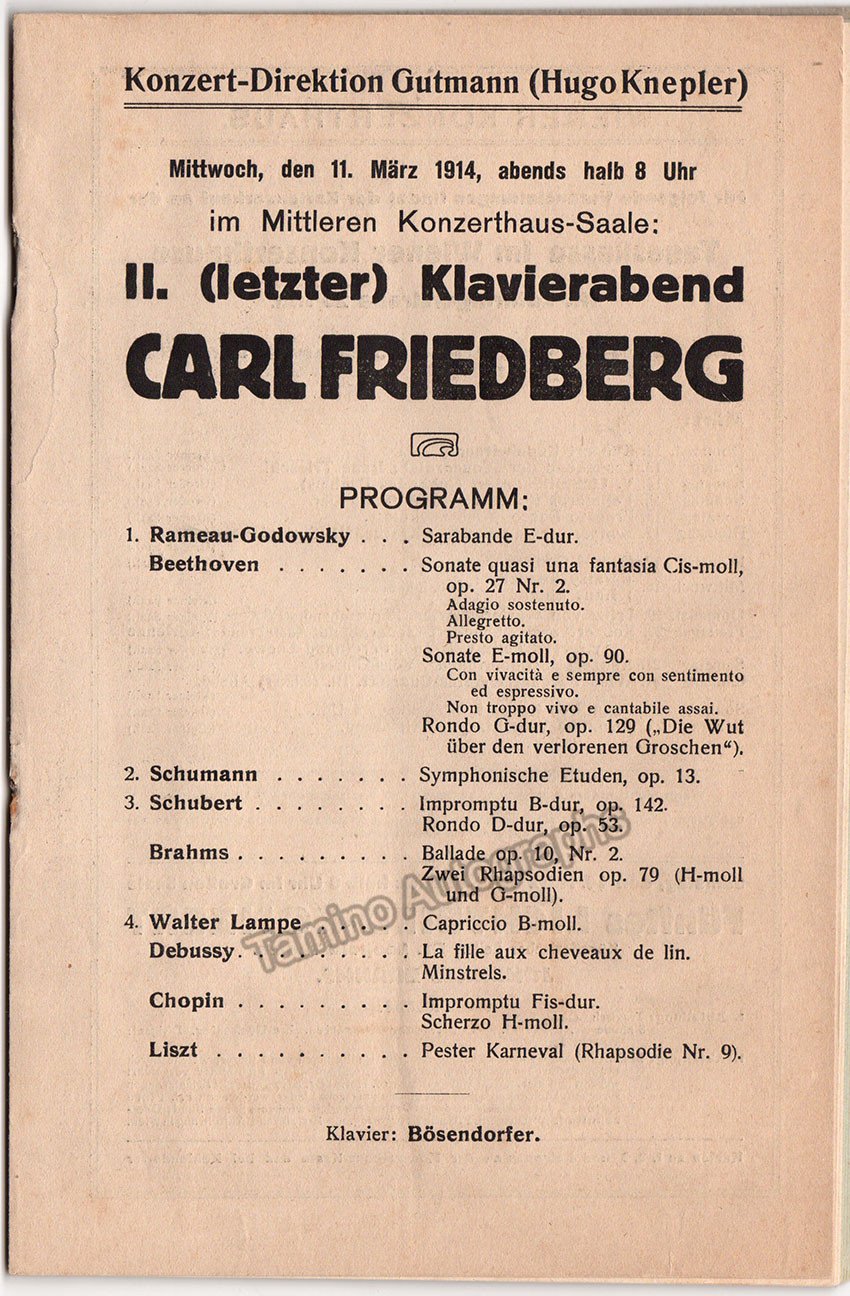 Concert program for a performance at Vienna Konzerthaus, Friedberg performs, full program with all pages and covers, 6 x 9 inches, excellent condition. See scan.