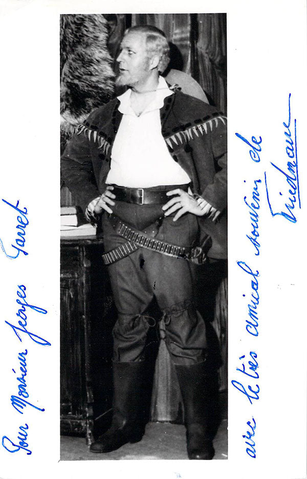 French Tenor (1926-2009), signed photograph, shown in role in Puccini's La Fanciulla del West, inscribed. Size is 3.5 x 5.5 inches, in excellent condition.