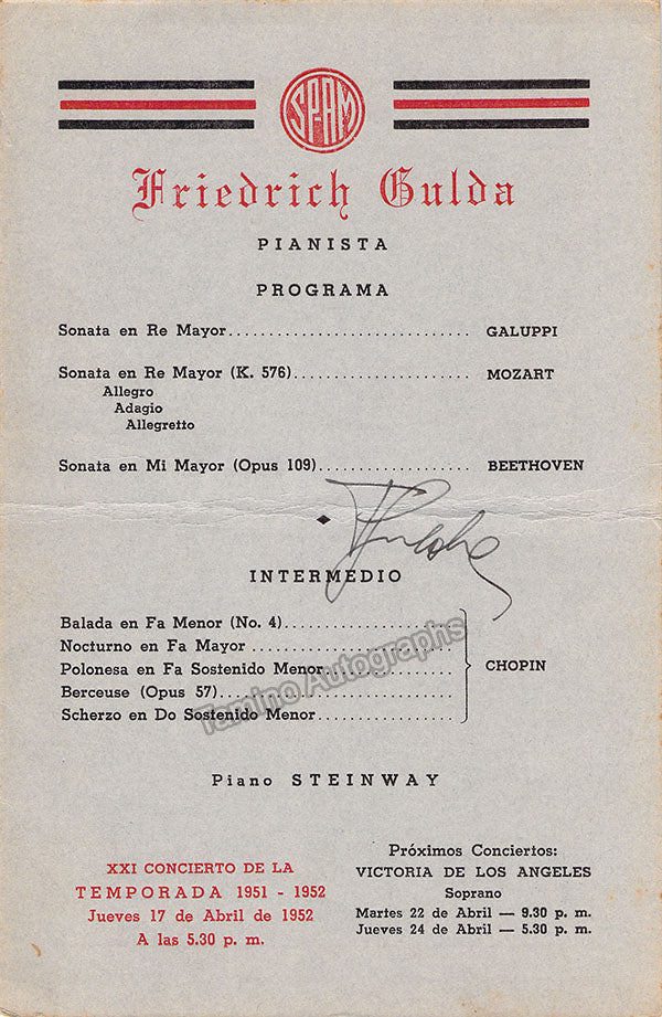 Gulda, Friedrich - Signed Program Havana 1952