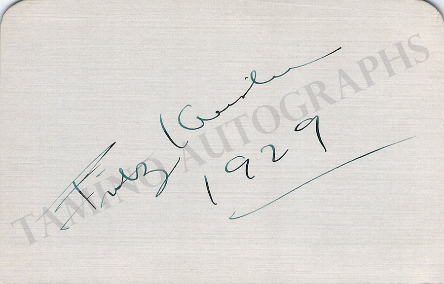 Fine card signed by him and dated 1929. Size is 5 x 3.25 inches, in excellent condition.