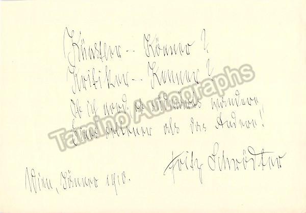 Schrodter, Fritz - Text Quote Signed 1910