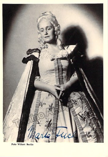 Signed photo postcard of the German soprano (1898-1974), shown in role. Inscribed and also signed on verso, dated in 1943. Size 4 x 5.75 inches.
