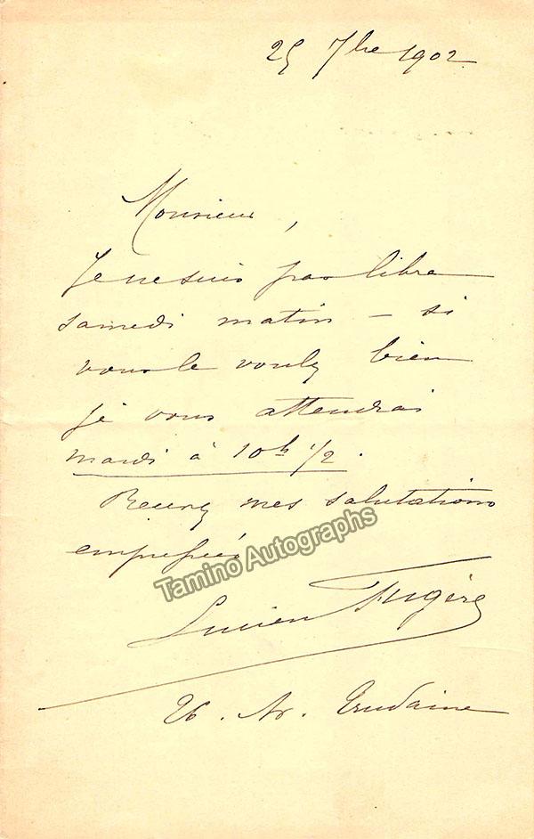 One autograph note signed, one page, dated in 1902, size is 4.5 x 7 inches, written in French and sold untranslated, in excellent condition.