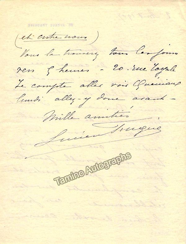 Fugere, Lucien - Set of 1 Autograph Letter Signed + 1 Signed Card - Tamino Fugere, Lucien - Set of 1 Autograph Letter Signed + 1 Signed Card - Tamino Fugere, Lucien - Set of 1 Autograph Letter Signed + 1 Signed Card - Tamino