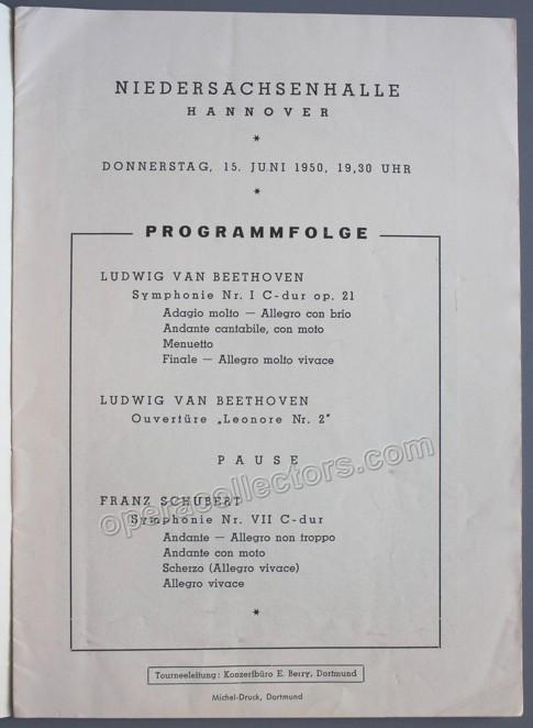 Wilhelm Furtwangler. June 15 1950, Hanover. Berlin Philharmonic Orchestra. Beethoven: Symphony No. 1 and Leonore II, Schubert: Symphony No. 7.