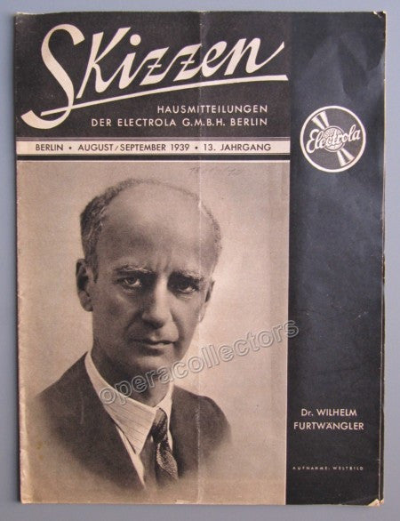 Unusual portrait on cover and article in Skizzen, magazine of the German record company Electrola. August/September 1939 (at the beginning of World War II).