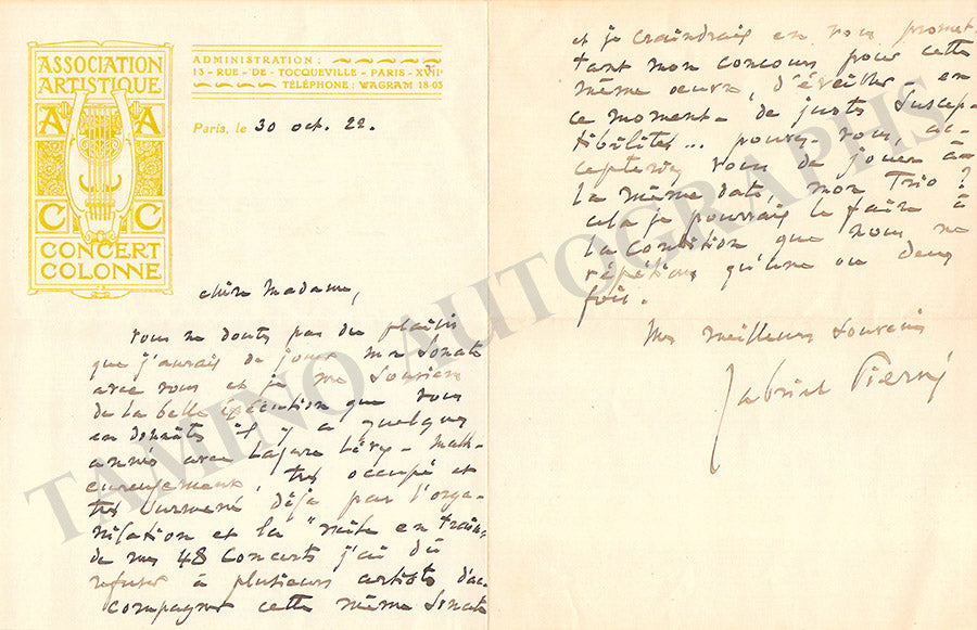 Pierne, Gabriel - Autograph Letter Signed 1928 Pierne, Gabriel - Autograph Letter Signed 1928