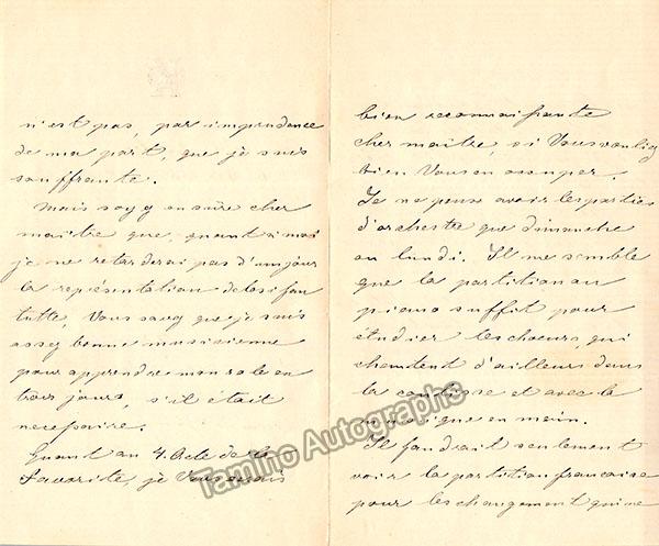 Autograph letter signed, written in French, sold untranslated. 4 folded pages, size is 4.1 x 5.8 inches, in excellent condition.