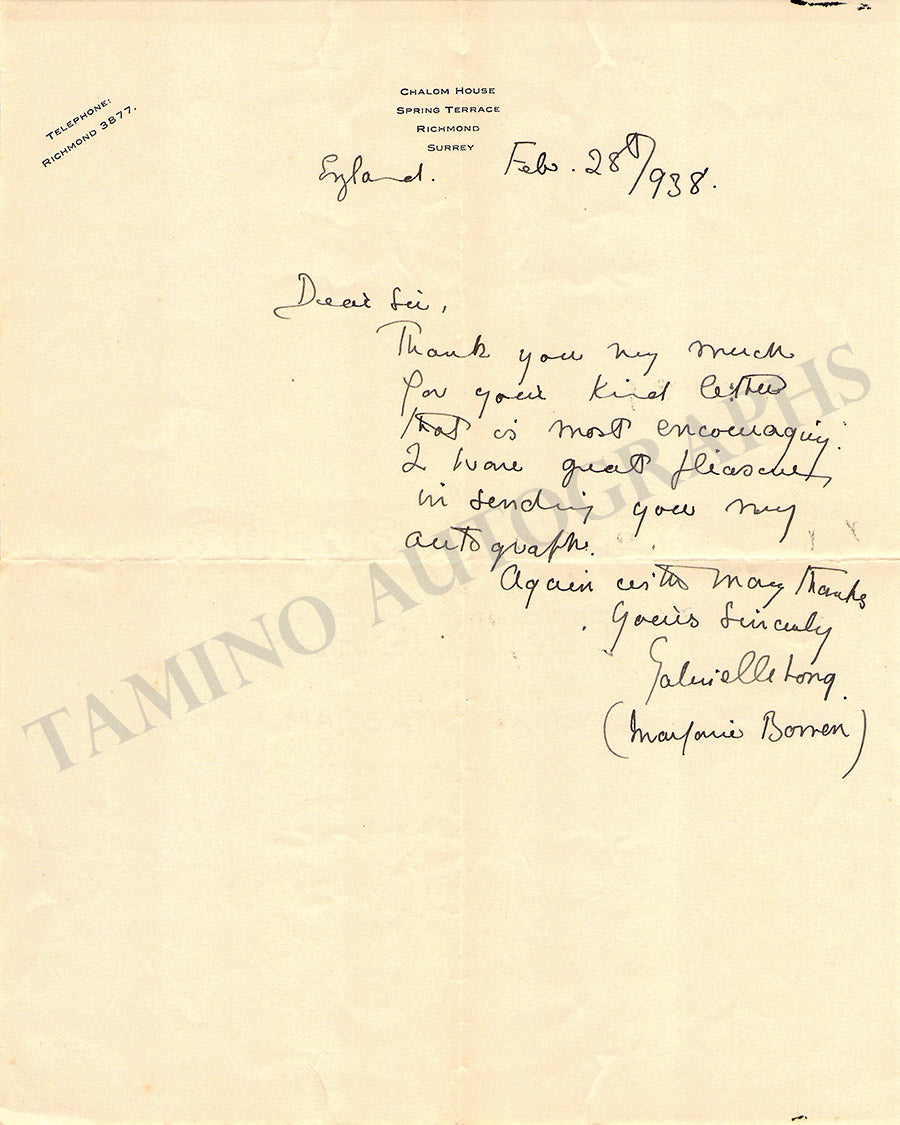 Long, Gabrielle - Autograph Note Signed