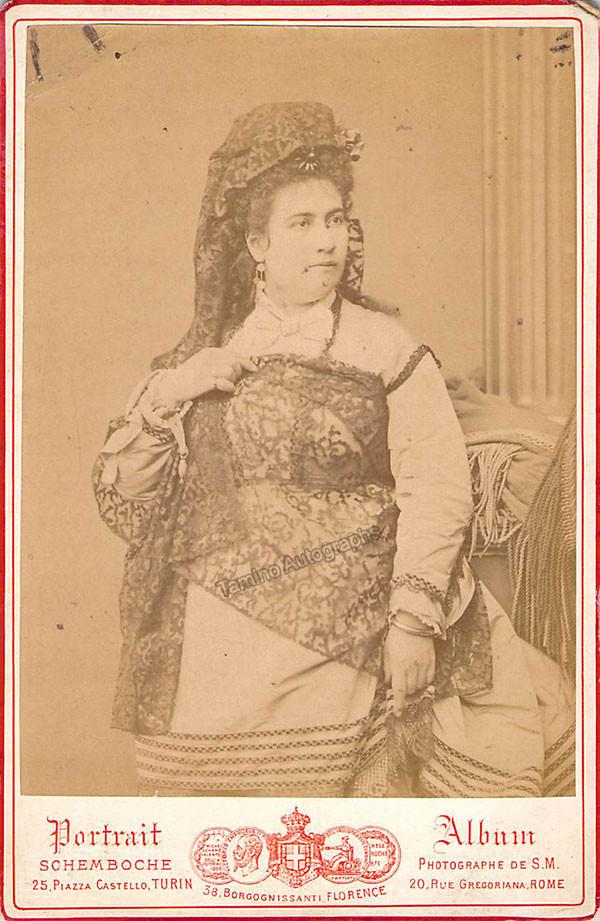 Italian mezzo-soprano (1835-1901), unsigned cabinet photo, shown as herself, photo by Schemboche, Turin. Size is 4.25 x 6.5 inches, in excellent condition.