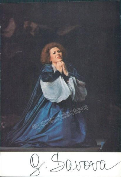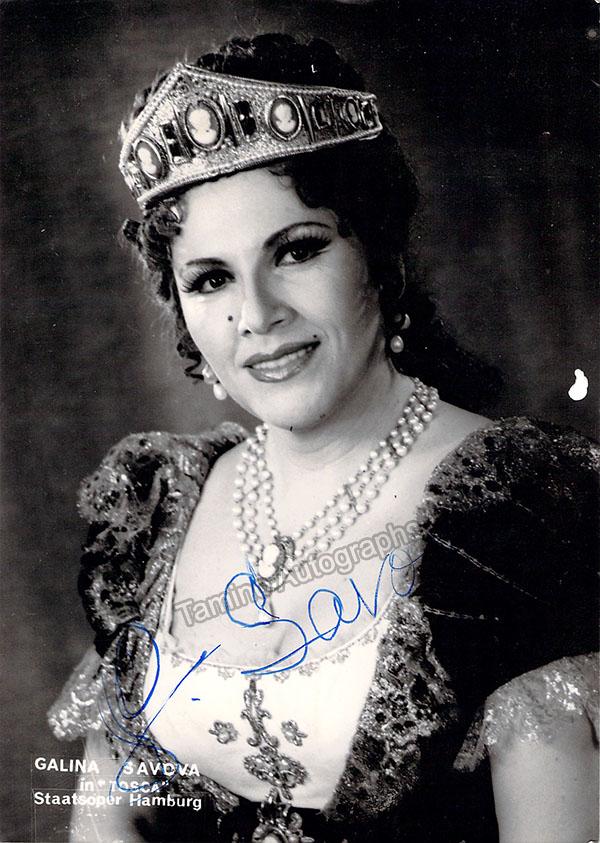 Black-and-white photograph signed by her, shown in title role of Puccini's Tosca; ink-stamped on verso by photographer Hans-Joachim Lieske (Hamburg). Size is 4 x 5.75 inches, in excellent condition.