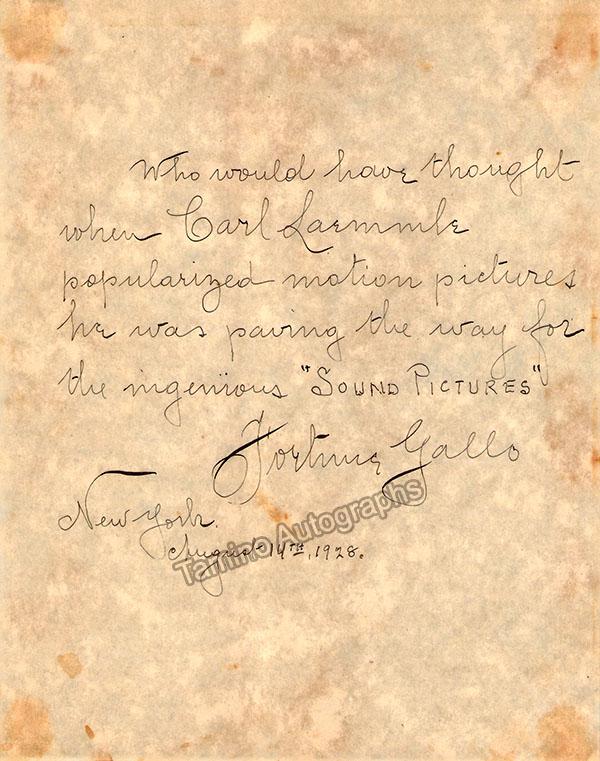 Gallo, Fortune - Autograph Note Signed 1928