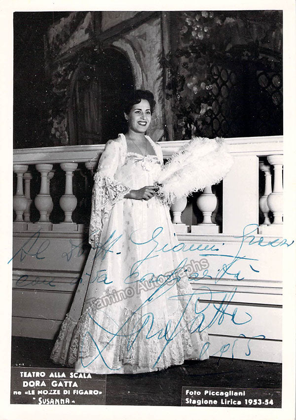 Italian soprano (1921-1979), signed photograph, shown as Susanna in Mozart's Nozze di Figaro, inscribed. Photo by Piccagliani, La Scala, Milan. Size is 4 x 6 inches, in excellent condition.