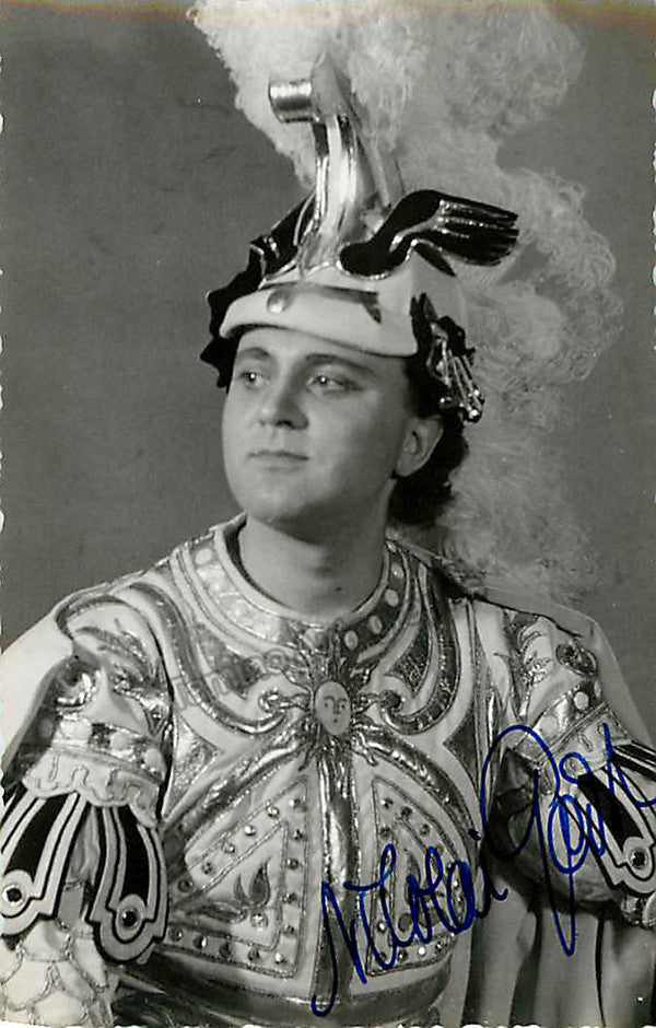 Swedish tenor (b. 1925), signed photo shown in role. Stamped on verso by photographer Max Erlanger de Rosen, Paris. Size is 3.25 x 5.25 inches.