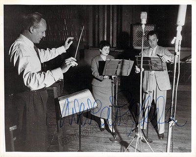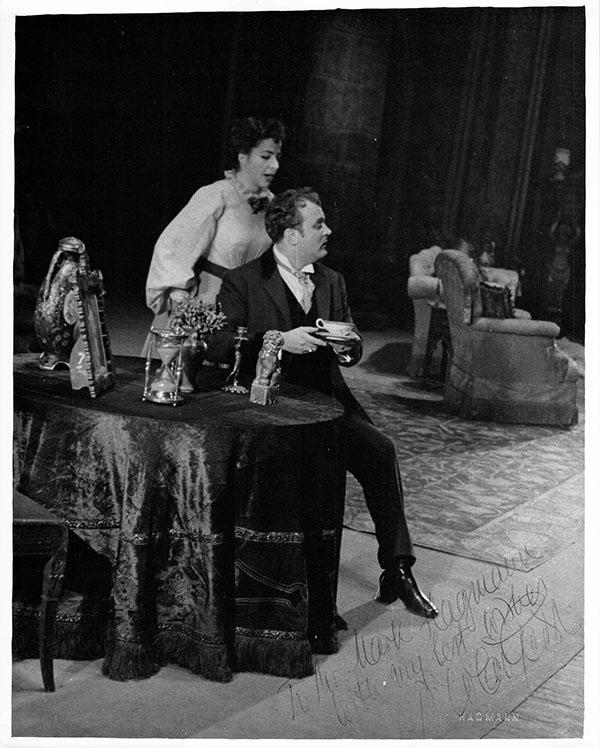 Black-and-white photograph mounted on hard cardboard, signed and inscribed by him with a short sentiment, shown as Des Grieux in Massenet's opera Manon at Teatro Colon (Buenos Aires); photo by Di Toto. Total size is 7 x 9.3 inches, in very good condition.