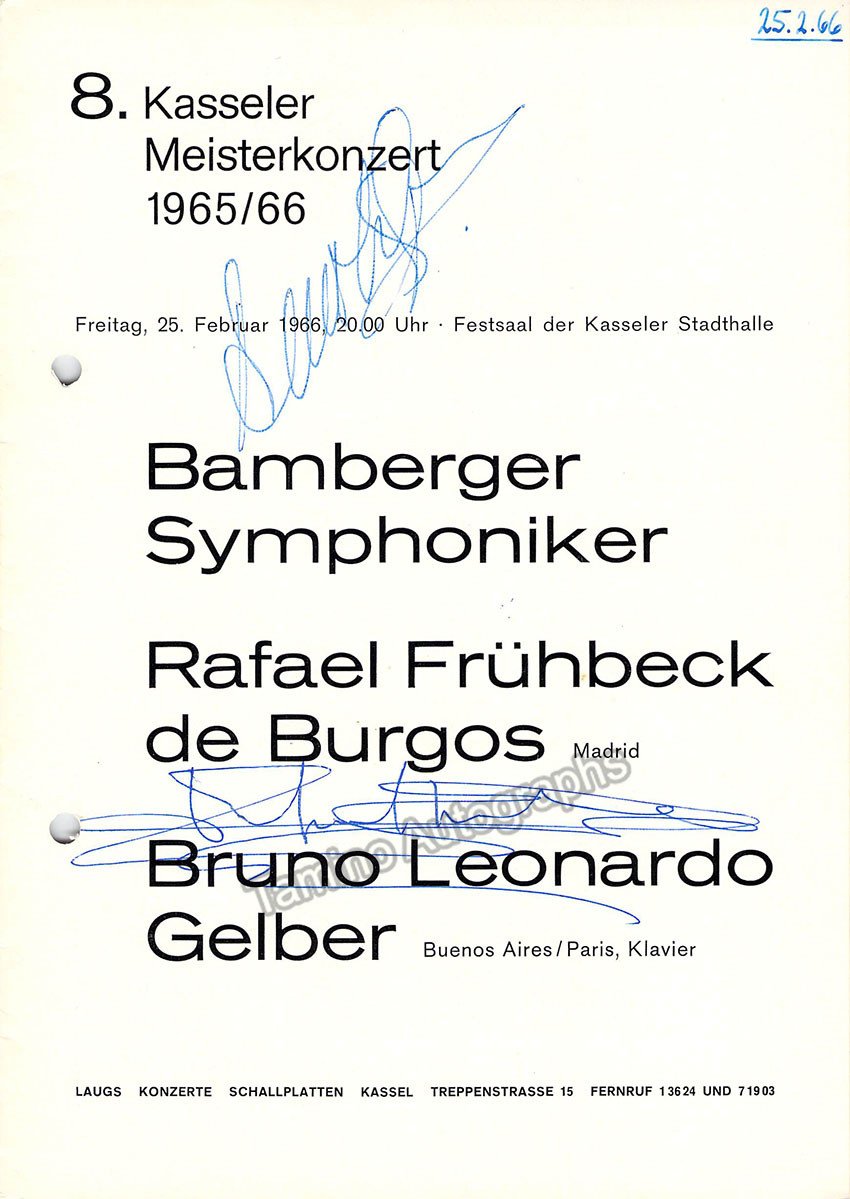 Gelber, Bruno Leonard - Fruhbeck de Burgos, Rafael - Signed Program Kassel, Germany 1966