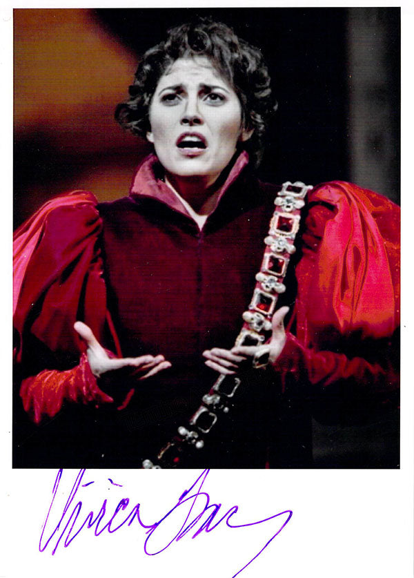 Signed photograph, shown in the title role of Handel's Ariodante. Size is 5 x 7 inches, in excellent condition.
