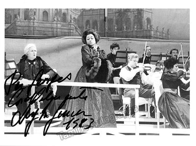 Signed photograph, shown in a concert presentation of an unidentified opera and role. Stamped on verso by photographer Mark Smith, Venice. Size is 7 x 9.5 inches, in excellent condition.