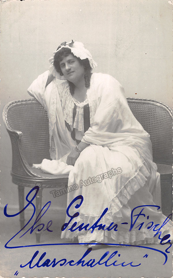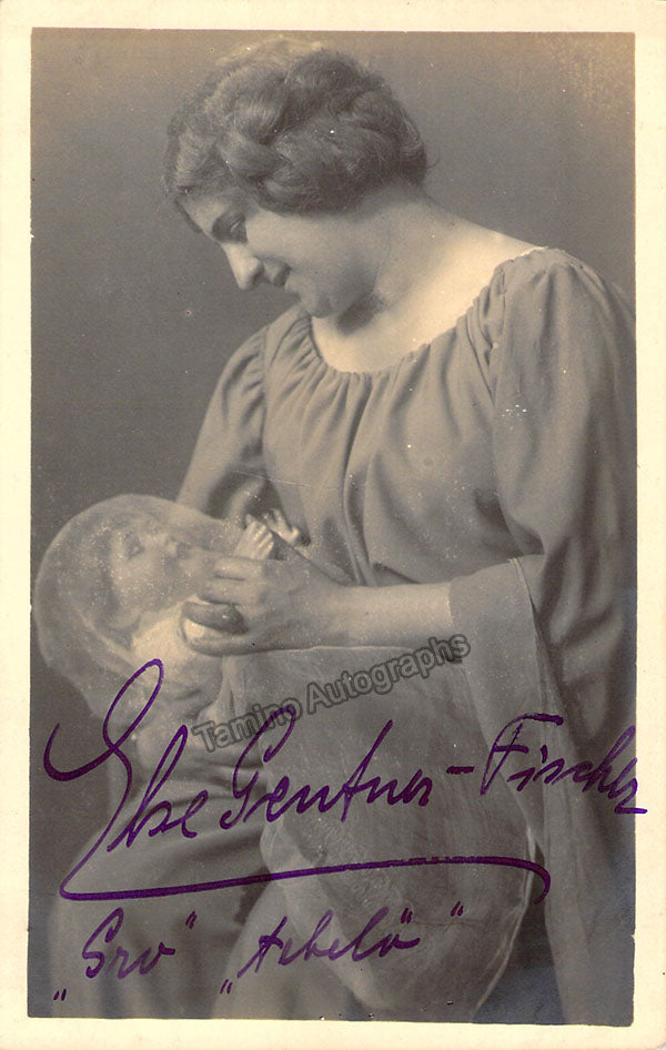 Signed postcard photograph, shown as Gro in Josef Gustav Mraczek's Aebelo. Bold handwriting and signature. Stamped on verso by photographer Karl Bauermann, Frankfurt. Size is 3.5 x 5.5 inches, in excellent condition.