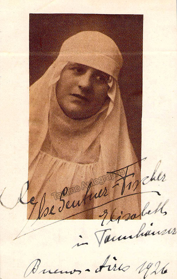Signed postcard photograph, shown as Elisabeth in Richard Wagner's Tannhauser, dated in Buenos Aires in 1926. Bold handwriting and signature. Size is 3.25 x 5.25 inches, vintage item, in very good condition.