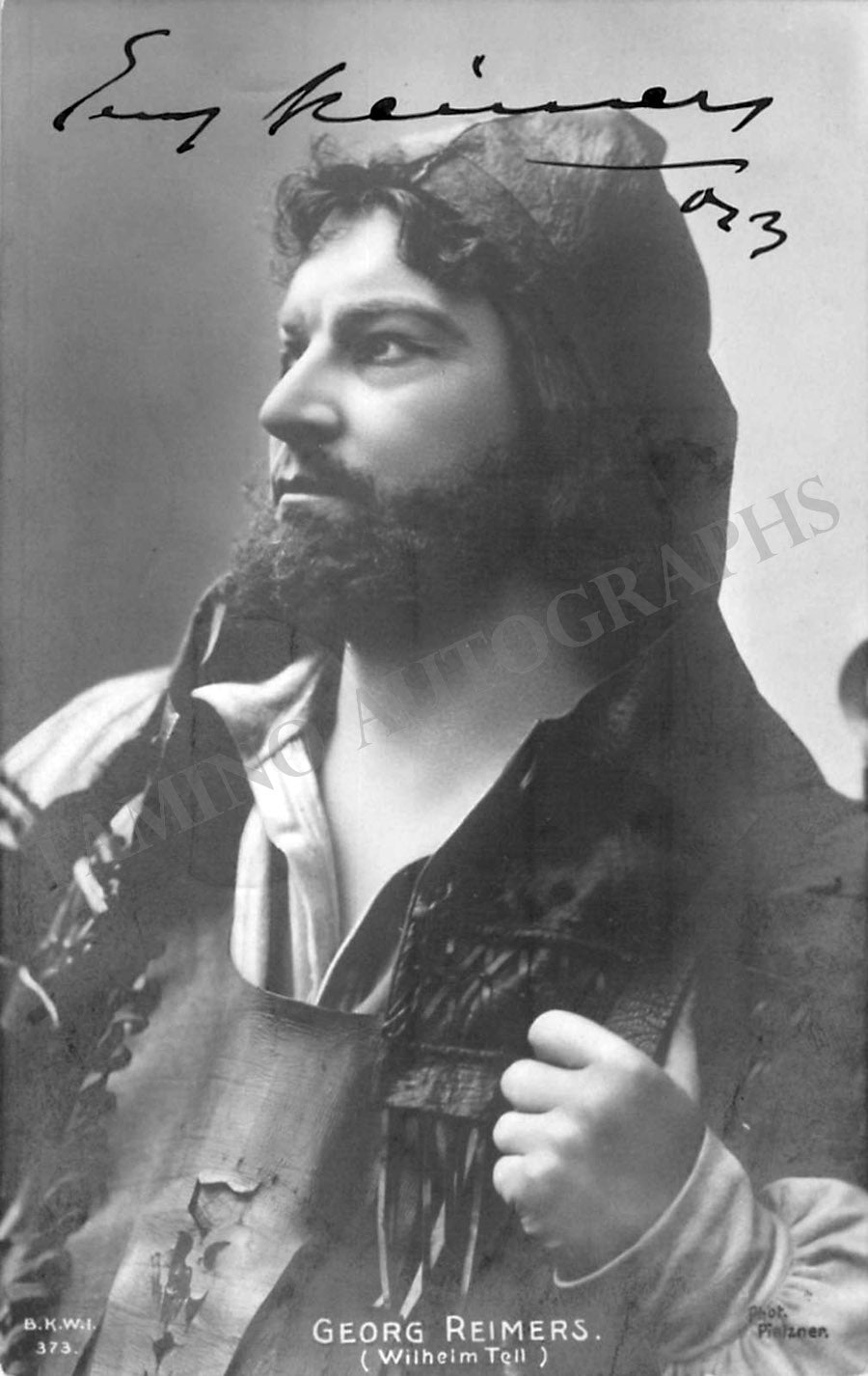 Gorgeous black-and-white photo postcard signed by him and dated, shown as Arnold in Rossini's opera Guillaume Tell. Size is 3.3 x 5.3 inches, in excellent condition.