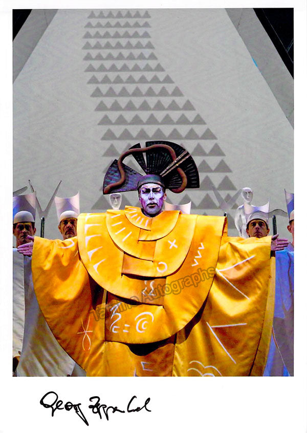Beautiful color photograph signed by him, shown as Zarastro in Mozart's opera Die Zauberflöte. Size is 4.9 x 7 inches, in excellent condition.