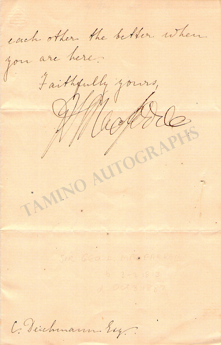 MacFarren, George Alexander - Autograph Letter Signed MacFarren, George Alexander - Autograph Letter Signed